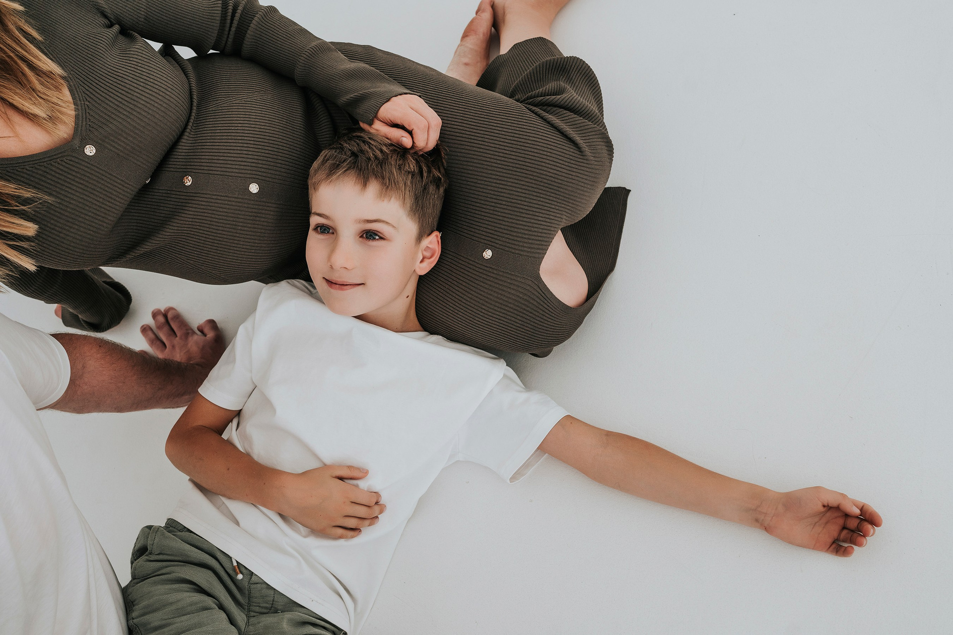 Семейная лайфстайл-фотосессия в студии с двумя детьми