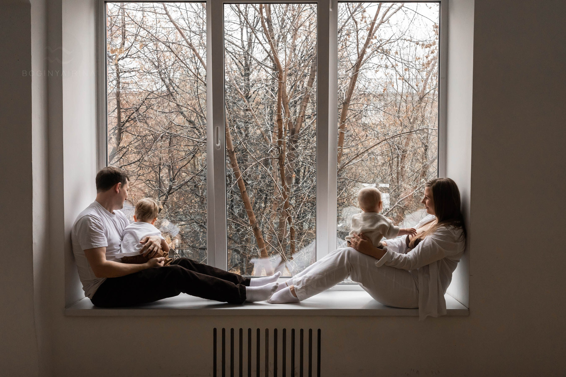 Семейная лайфстайл-фотосессия в студии с двумя детьми