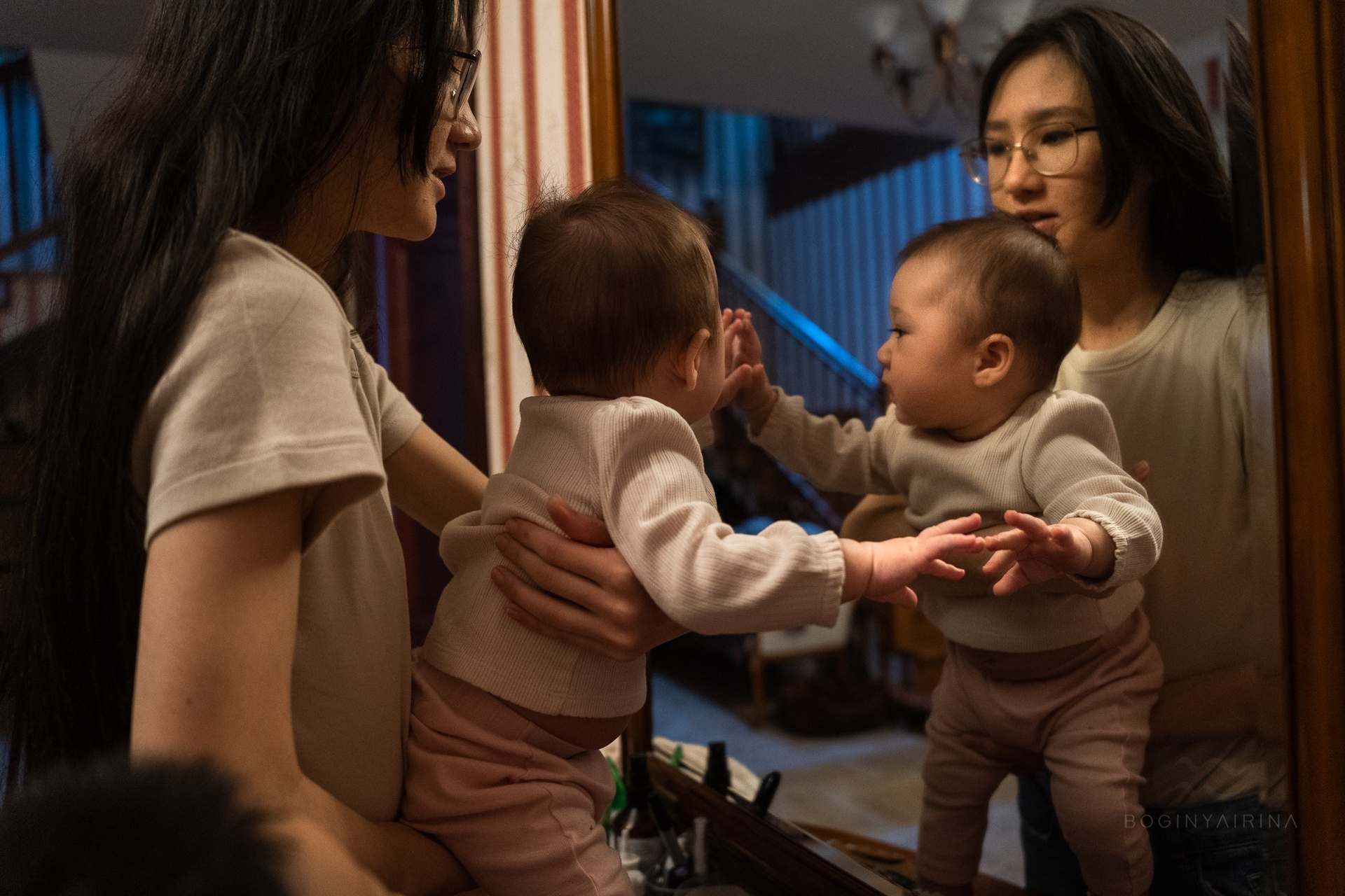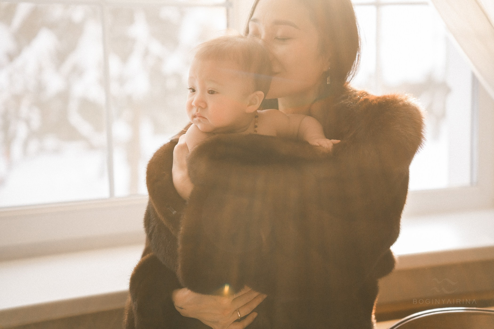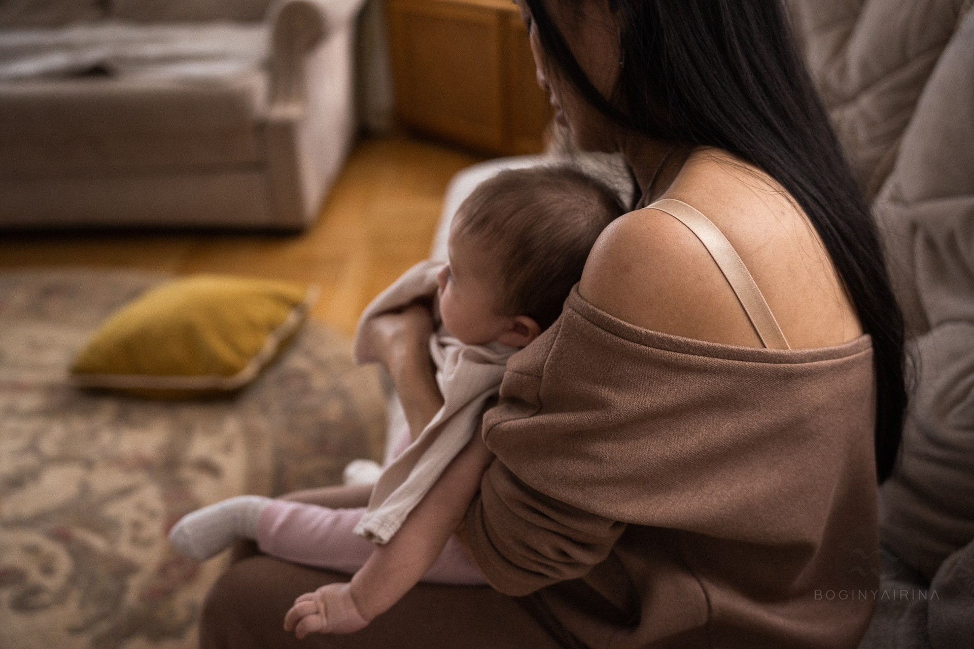 Фотосессия мамы и малыша до года в студии