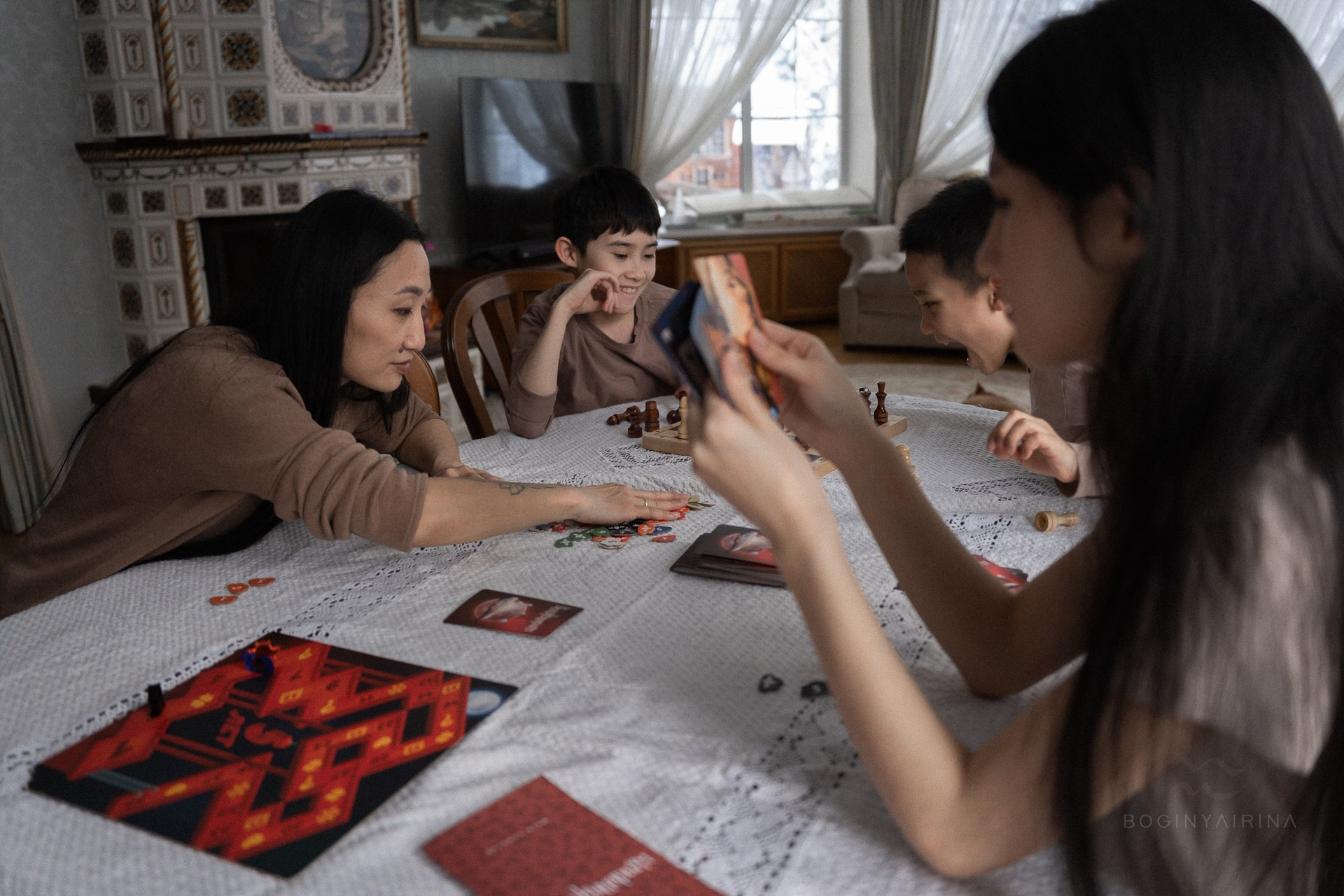 Семейная лайфстайл-фотосессия в студии с двумя детьми