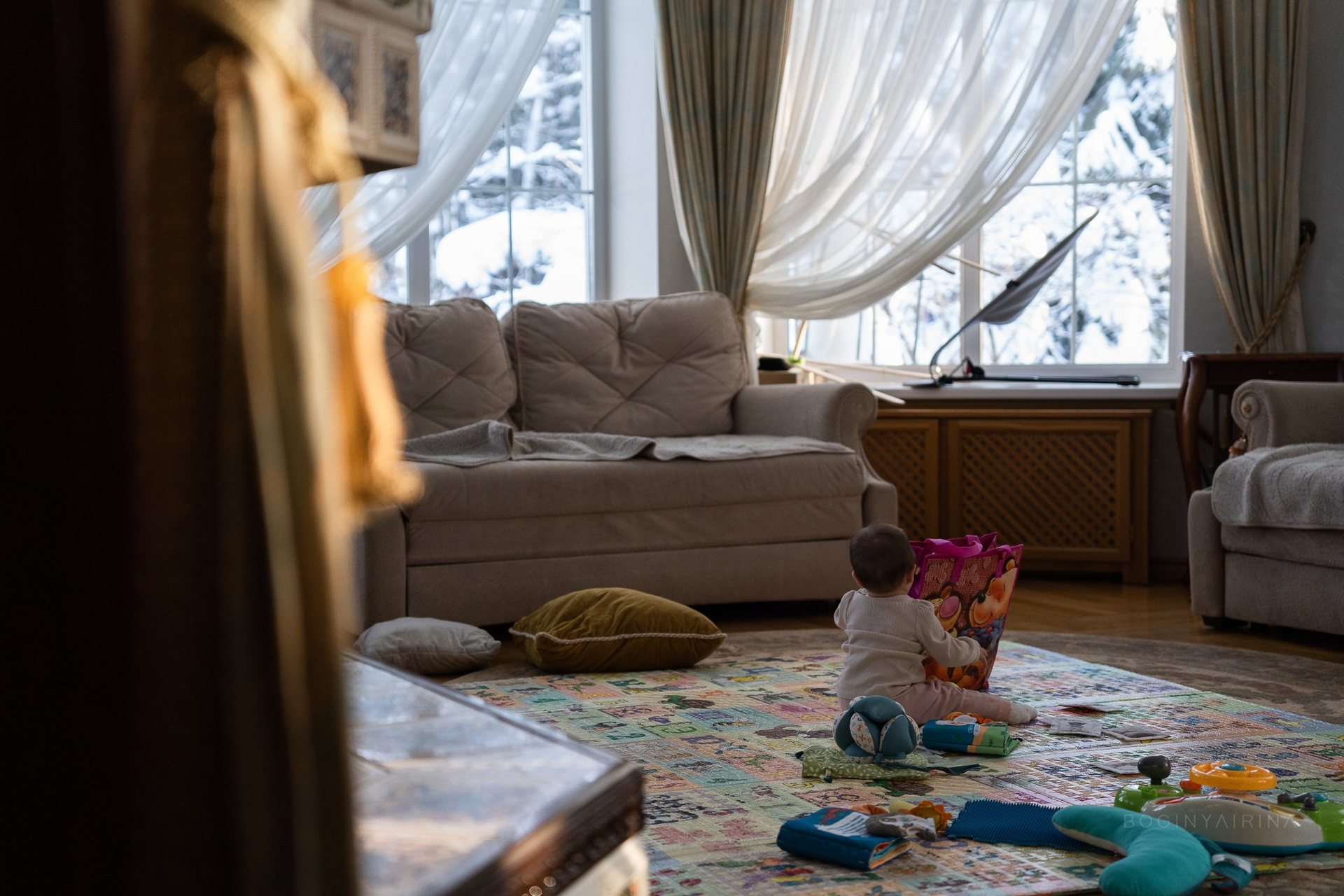 На момент съемки у малыша был очень чувствительный сон и капризное состояние, поэтому сложные позировки отпали...