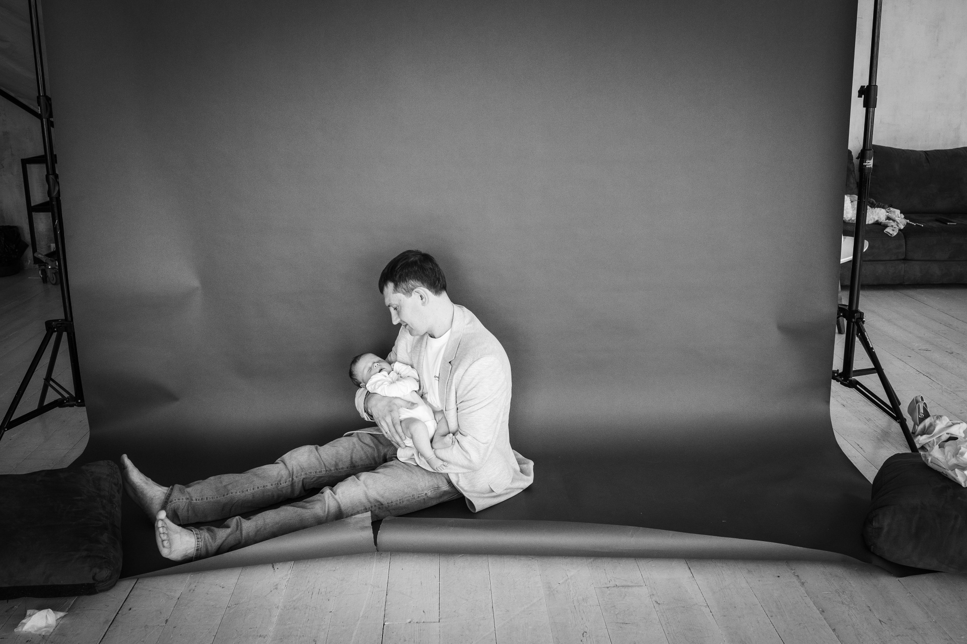 Сама съемка проходила в очень спокойной атмосфере. Ирина креативно подошла к вопросу, предложила идеи для съемки. В процессе малыш не по плану уснул, Ирина использовала это время и сделала супер крутые кадры.
